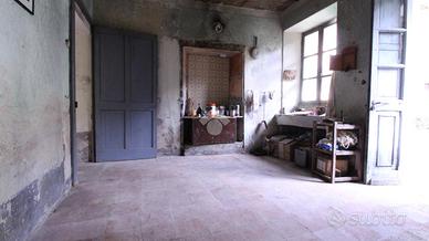 L' immobile è la fusione di due unità abitative adiacenti e lo stato attuale, della prima unità, presenta una zona giorno composta da una cucina con scala annessa che collega il piano terra alla zona notte dove sono presenti due camere da letto, una delle quali con accesso sul balcone rivolto verso la facciata della casa ed un locale ripostiglio; sempre al piano terra trovano ubicazione anche due cantine, una delle quali utilizzata in parte come autorimessa e un locale di servizio utilizzato come tavernetta con volte in mattoni.