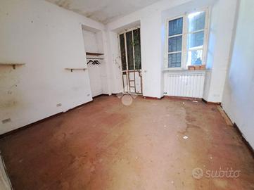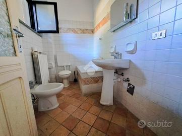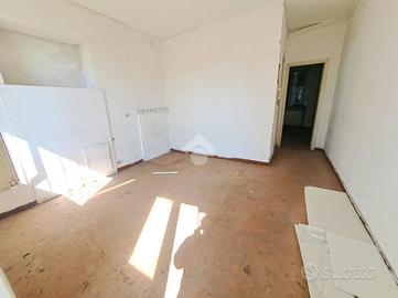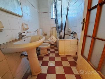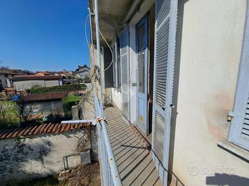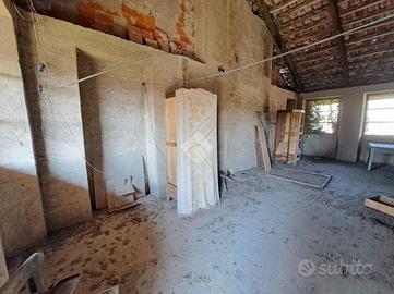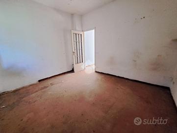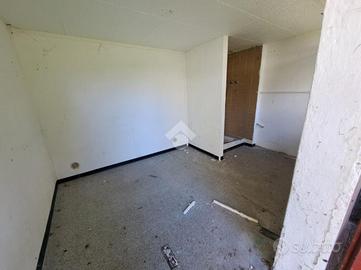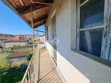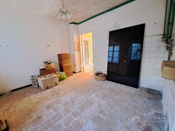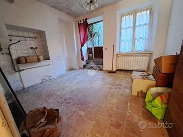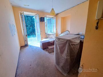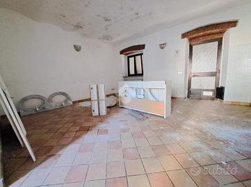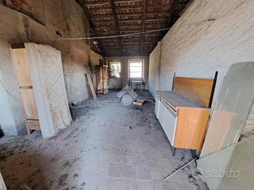 In centro paese, porzione di casa disposta su tre livelli da ristrutturare. Il piano terra è costituito da un locale cucina separato dal soggiorno con bagno con vasca e finestra. Invece, il piano primo accessibile mediante il vano scala in comune con la proprietà a fianco è costituito da una porzione di balcone dal quale si ha accesso al piano. Quest'ultimo è costituito da due locali con bagno con vasca e finestra. Inoltre, è presente il locale sottotetto. A corredo della proprietà vi sono due depositi rispettivamente di 61 mq circa e 41 mq circa e due box auto di 14 mq e 15 mq circa. Esternamente vi è una porzione di giardino privato e fuori dalla proprietà vi è un terreno di 120 mq circa ad uso orto.