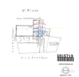Ad Acireale, precisamente in via Penelope n. 16, immobile semi-indipendente su due elevazioni. Ha una superficie interna di mq.75 ed è composto da ingresso dal primo piano su corridoio, sala da pranzo, camera da letto, bagno e terrazzo a livello di mq. 27, ed ulteriore ammezzato al primo piano superiore soprastante di circa 20 mq.