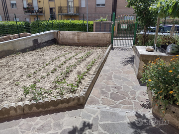 Il piano terra è composto da una sala, cucina abitabile, un ampio antibagno e un bagno. Completa il piano una terrazza coperta affacciata sul giardino.