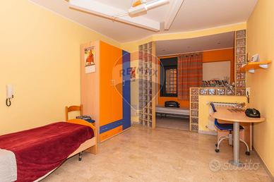 L'ingresso conduce direttamente alla zona giorno, composta da un ampio soggiorno con camino e una cucina abitabile.