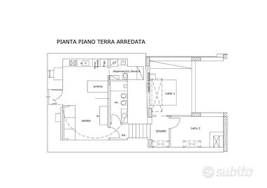 Sita a piano terra e così disposta: ingresso su comoda zona giorno con cucina a vista e con vano dispensa/lavanderia, procedendo nel disimpegno troviamo il secondo bagno, un'ampia camera da letto matrimoniale e la cameretta!