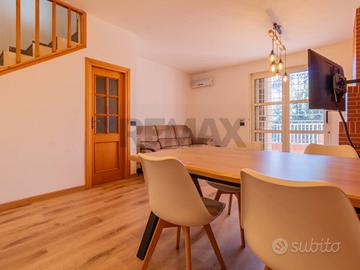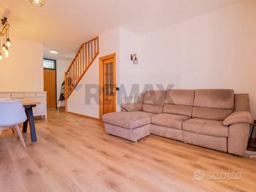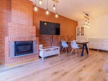 Al piano terra troviamo l'accesso indipendente a una corte privata che ci introduce alla zona giorno dove troviamo la cucina, un ampio salone con camino a pellet e comodo terrazzo;