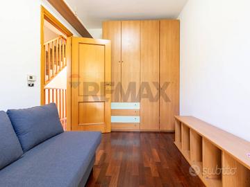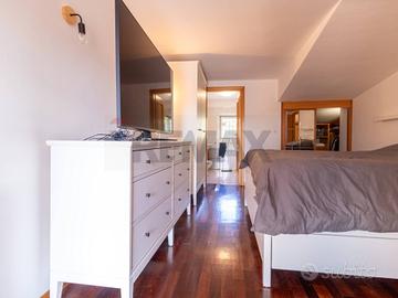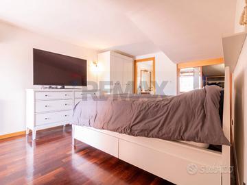 Al secondo piano mansardato troviamo un piccolo ripostiglio, un ampia camera da letto con bagno privato e cabina armadio e un balcone.