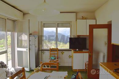 Appartamento al 1° piano : ingresso ampio che abbraccia sulla destra l'ampia e luminosa cucina con accesso al al fantastico doppio terrazzo panoramico !!!!! Sulla sinistra la grande sala con tavolo da pranzo e zona relax con ampio camino da "far funzionare"; al centro il corridoio con grande mobile.