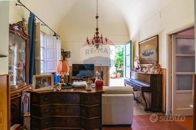 Consta di 170 metri quadri interni, tutti con volte reali, e 100 metri quadri esterni, che concludono su un piccolo giardinetto, fornito di una cuccia in muratura, coperta da tegole, e da una apprezzabile cantina, fornita di impianto di acqua, che può essere usata come depandance, oppure garage per macchina di piccola cilindrata, moto e bici.