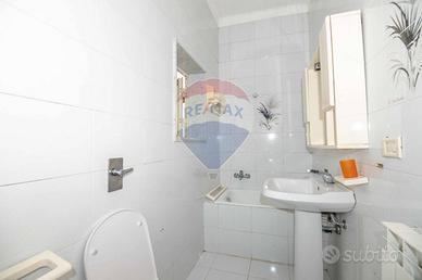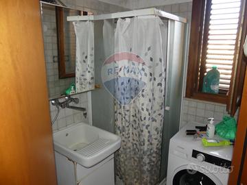 Il garage al piano terra dispone di un bagno e di uno spazio utilizzabile come ripostiglio
