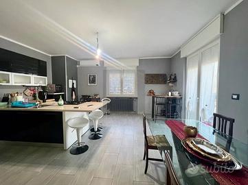 Cossato, in zona comoda a tutti i servizi di prima necessità, proponiamo in vendita casa semindipendente così composta; al primo piano, ingresso sul grande open space con camino a vista, bagno padronale, tre camere da letto matrimoniali, di cui una con cabina armadio e due balconi.