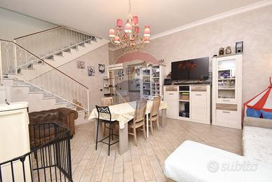 Dal ingresso, che si trova al piano terra si accede tramite la scala interne al piano primo su un ampio soggiorno / openspace, con possibilità di separare la cucina grazie a eleganti porte a scomparsa.