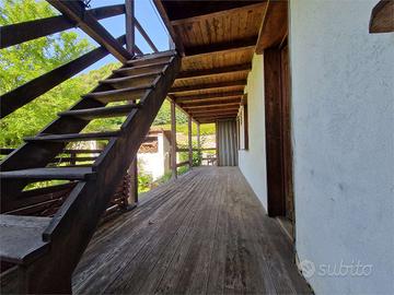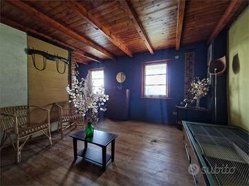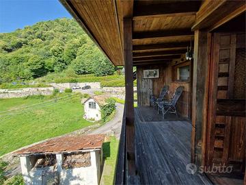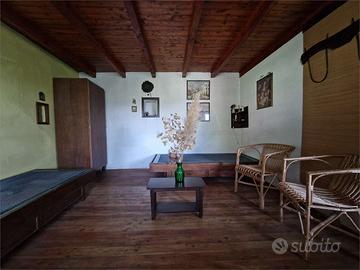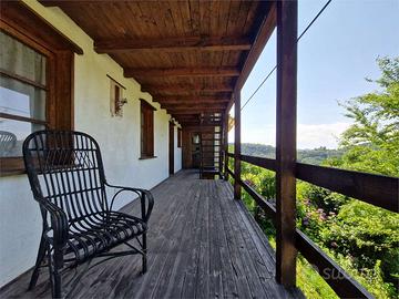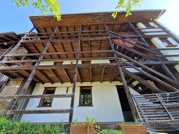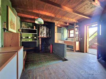 Lago d'Orta in piccolo borgo collinare, proponiamo particolarissima casa autonoma dominante il paese e soleggiatissima, attualmente divisa in tre bilocali con ampie balconate in legno. La casa ha un'architettura molto particolare e necessita di interventi di ammodernamento e rinnovamento, poiché è da tempo inutilizzata. Due bilocali di circa 40 ciascuno composti da soggiorno, angolo cottura, bagno e camera da letto sono posti al piano rialzato e al primo piano.