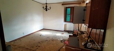 Treia, frazione Chiesanuova, casa singola su tre livelli, con corte privata, accessori annessi . Al piano terra magazzino/stalla con possibilità di cambio destinazione ad uso abitativo. Al primo piano soggiorno con caminetto e piccola cucina, 3 camere da letto, bagno e balcone. Al secondo ed ultimo piano ampia soffitta. La struttura portante è in buone condizioni, necessita di lavori interni.
