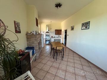 Al piano terra troviamo un'accogliente zona giorno che include una cucina abitabile dotata di camino, ideale per momenti conviviali e cene in famiglia. Il soggiorno luminoso offre uno spazio versatile dove rilassarsi dopo una lunga giornata. Al primo piano si sviluppa la zona notte composta da due camere da letto confortevoli, perfette per garantire il giusto riposo. Completano l'immobile doppi servizi moderni e funzionali che assicurano comodità quotidiana.