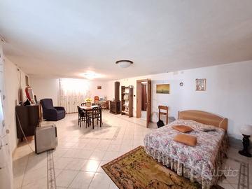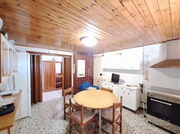 P.T. (H 2,30 mt): grande taverna, cucina, w.c., ripostiglio sottoscala (tutto censito come cantina e sgombero). Garage per auto media di 22 mq.