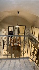 Salendo al primo piano vi aspetta un incantevole terrazzino interno che conduce all'ingresso dell'appartamento principale. Qui si trovano due ampie camere dai soffitti altissimi (5,5 metri) che regalano luminosità agli spazi e offrono accesso ai balconi con vista sul vivace corso sottostante. Completano l'unità abitativa uno studio e ulteriori servizi utili.