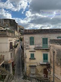 La struttura presenta elementi decorativi storici come cornici lavorate sopra le finestre e dettagli angolari scolpiti sulla facciata principale; il tutto immerso nell'atmosfera unica delle antiche strade modicane, tra scorci pittoreschi e la tranquillità della vita cittadina tradizionale. Il terrazzino offre uno spazio esterno riservato ideale per momenti di relax o convivialità all'aperto.