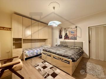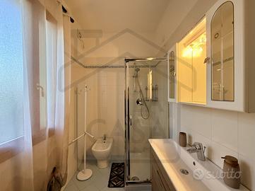 Un portico coperto accoglie all'ingresso della prima unità abitativa, situata al piano terra. L'interno è composto da un ampio ingresso che conduce alla zona giorno, dove trovano spazio la cucina, il soggiorno separato e un bagno finestrato con box doccia a servizio di questo ambiente. La zona notte comprende invece due camere matrimoniali di generose dimensioni e un secondo bagno finestrato, anch'esso dotato di box doccia. E' presente anche una cantina, da usufruire in base alle proprie esigenze, come stanza hobby o come studio.