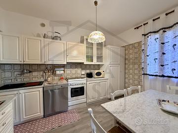 Attraverso un vano scala esterno si accede al piano superiore, dove si sviluppa la seconda unità abitativa, dotata di un grande terrazzo abitabile coperto, perfetto per pranzi e cene all'aperto o semplicemente per godersi la vista del giardino in totale privacy.