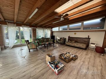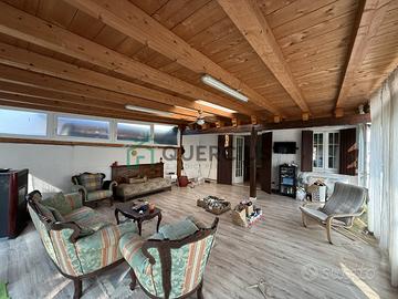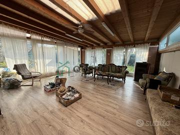 Al piano terra si trova l'ampio soggiorno, la cucina abitabile dalla quale è possibile uscire nella spaziosa veranda e il bagno di servizio.