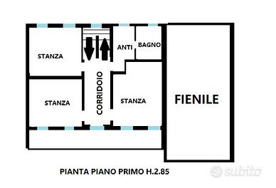 Piano primo: tre camere matrimoniali, bagno, disimpegno e terrazzo.