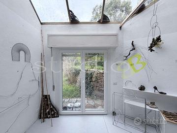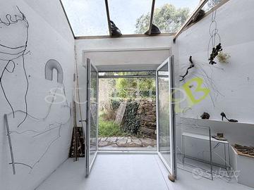 Seborga, proponiamo in vendita immersa in una zona residenziale di pregio caratterizzata da estrema tranquillità e ampi spazi verdi, una proprietà attualmente utilizzata come atelier darte. L'immobile si presenta come un volume unico inserito nel paesaggio ma concepito con due ingressi separati che ne garantiscono l'indipendenza e la versatilità. Il corpo principale si sviluppa su una superficie di 55 mq distribuiti su due livelli completamente aperti in stile open-space, dove la luce naturale domina ogni angolo grazie all'esposizione a sud che regala una vista suggestiva sulle colline circostanti fino a raggiungere il mare. Questo ambiente accogliente e funzionale è già dotato di zona cucina e bagno dedicato. Il secondo corpo di fabbrica offre volumi generosi con una superficie di circa 30 mq al piano terra e ulteriori 20 mq situati su un piano mezzanino, dove l'altezza interna raggiunge i 5 metri sulla sommità più alta permettendo la presenza di un soppalco inondato di luce grazie ad un ampio lucernario a soffitto. Tutta la proprietà è circondata da un giardino privato con accesso diretto da ogni lato della struttura, creando una continuità fluida tra interno ed esterno. Abbiamo infissi di nuova generazione a doppio vetro e zanzariere installate su ogni apertura, oltre ai regolari allacciamenti alla corrente elettrica, all'acquedotto e alla fognatura comunale. La posizione è ideale per chi ricerca la massima privacy, con il parcheggio situato in un'area residenziale di pregio a circa 50 metri a piedi dall'abitazione. La struttura si presta perfettamente a diverse soluzioni d'uso, dal mantenimento dell'attuale attività creativa alla conversione in due un RIFERIMENTO: BL1106 CLASSE ENERGETICA: G 383,48 kWh/m3 a