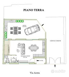 Il futuro immobile avrà ingresso pedonale in facciata e ingresso carrabile da un cortile comune alle altre due unità presenti sul lotto.