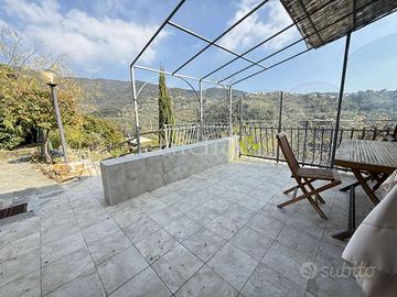 A pochi chilometri dal paese di Vallebona, proponiamo in vendita una caratteristica casa in pietra con splendida vista aperta sulla vallata fino al mare. Limmobile, recentemente ristrutturato, si presenta in ottime condizioni ed è così composto: al primo piano troviamo un luminoso soggiorno con cucina a vista, una camera matrimoniale, un bagno e un terrazzo ideale per godersi il panorama. Al piano terra, collegato da scala esterna, sono presenti una seconda camera con bagno e una comoda cantina. Completa la proprietà un accogliente porticato, perfetto per pranzi e cene allaperto, e un terreno curato con alberi di ulivo in produzione, piante aromatiche e alberi da frutto. Limpianto per lacqua calda del primo piano è alimentato da pannelli solari termici. Presente inoltre un posto auto coperto. Una soluzione ideale per chi cerca charme, privacy e una vista mozzafiato a pochi minuti dal borgo. RIFERIMENTO: BL1111 CLASSE ENERGETICA: G 229 kWh/m3 a
