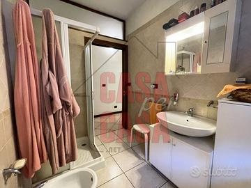 Al piano primo troviamo un terrazzo di circa 80 mq, tre camere da letto matrimoniali, un bagno finestrato con la vasca ed un poggiolo.
