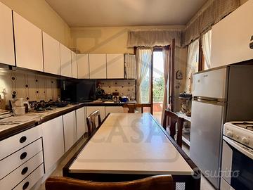 Completano il livello una funzionale lavanderia, un terzo bagno, due ampi ripostigli e un garage fuori terra direttamente collegato all'abitazione, comodo e sicuro.