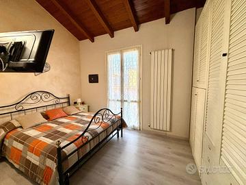 Al piano superiore presente zona notte con 2 camere da letto matrimoniali ed uno studio/cabina armadi, ulteriore bagno finestrato con vasca, 2 balconi e ampia armadiatura a muro.