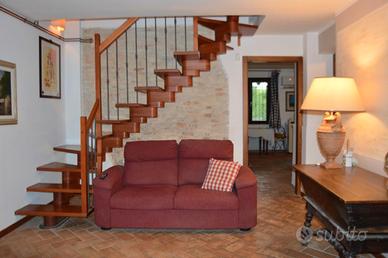 In zona San Paterniano, in un'oasi di pace e riservatezza, proponiamo in vendita casa singola di mq. 165,00 disposta su due livelli, circondata da una corte esclusiva di mq. 1.900,00 circa piantumata con alberi da frutta. Il piano terra ospita un accogliente soggiorno, sala, cucina abitabile con accesso al portico, studio e bagno. Da una comoda ed elegante scala in legno si accede al piano primo dove troviamo un elegante salotto con camino all'ingresso, tre camere e bagno. Possibilità di dividere la casa in due appartamenti in quanto in una delle tre camere vi sono gli attacchi per un'eventuale cucina. L'unità immobiliare, ristrutturata completamente nei primi anni Duemila, è dotata di impianto di impianto di videosorveglianza, allarme e solare termico.