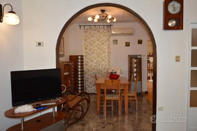 Passeggiando tra i vicoli del centro storico, a pochi passi dal mare, troviamo in vendita questa soluzione cielo/terra di mq. 116,00 disposta su due livelli. Il piano terra ospita un ampio salone con sala da pranzo, cucina abitabile con accesso al locale lavanderia e ripostiglio; il piano primo, invece, è composto da due camere con balcone, studio, ripostiglio e bagno.