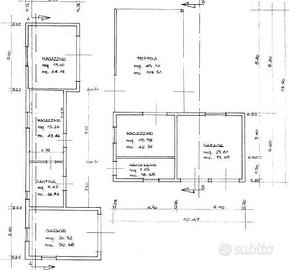 La soluzione si sviluppa in un lotto di 1700 mq con ampio magazzino esterno e doppio garage.