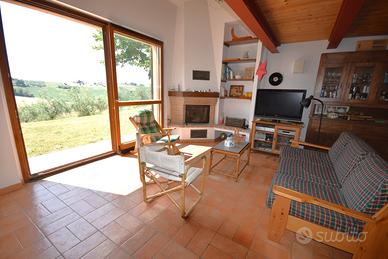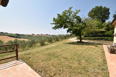 Monte San Vito - Immersa nella bellezza del paesaggio collinare e circondata da un'incantevole corte privata di 4.000 mq a cui si aggiunge un maestoso terreno in cui sono presenti un bosco e un uliveto, questa splendida casa indipendente rappresenta la proprietà immobiliare ideale per chi sogna di vivere nella quiete della campagna.