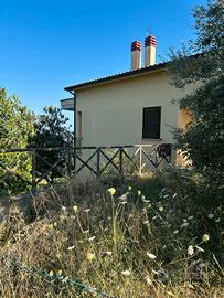 Casa singola composta da piano rialzato di circa 75 mq composta da: ampio salone e cucina openspace, 2 camere da letto e un bagno. Completano il piano una loggia di circa 8 mq ed un balcone di 15 mq vista campi sottostanti e mare.