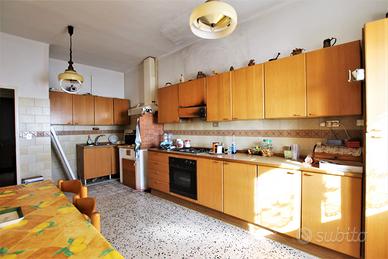 Casa singola nel centro di Capodarco di 2 livelli abitativi più soffitta, terrazzo e piano seminterrato con giardino così composta: al PIANO TERRA (140mq) ingresso su ampio disimpegno, zona giorno composta da sala da pranzo, cucina abitabile, zona tv e salotto; ampio studio, bagno di servizio e ripostiglio. PIANO PRIMO (110mq) diviso in 4 camere matrimoniali, bagno finestrato, lavanderia ed accesso alla terrazza di 30mq. PIANO SECONDO composto da sottotetto di 90mq ed ulteriore terrazza di 10mq. Completa la soluzione una cantina di 80mq al PIANO SEMINTERRATO.