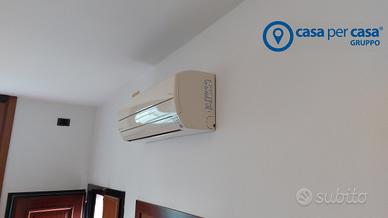 Esternamente la casa è circondata da un giardino esclusivo completamente recintato, nel quale troviamo anche il garage e la cantina.