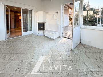 Il piano terra ospita l'abitazione principale, con ingresso indipendente, ed è composto da cucina, ampio soggiorno, camera matrimoniale, camera singola, due bagni finestrati, una veranda di 14 m² realizzata nel 2015 con camino e una terrazza di 65 m².