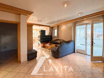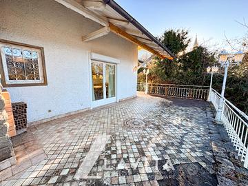Il piano terra ospita l'abitazione principale, con ingresso indipendente, ed è composto da cucina, ampio soggiorno, camera matrimoniale, camera singola, due bagni finestrati, una veranda di 14 m² realizzata nel 2015 con camino e una terrazza di 65 m².
