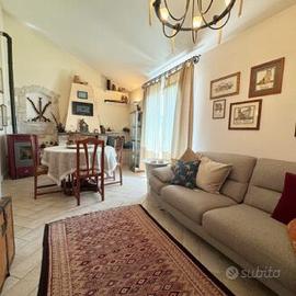 Piano terra composto da ampio soggiorno con angolo cottura, due camere matrimoniali e bagno. Prevede leggera ristrutturazione.