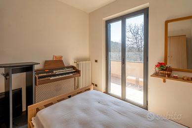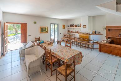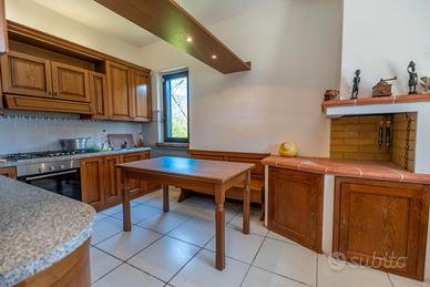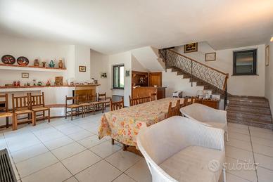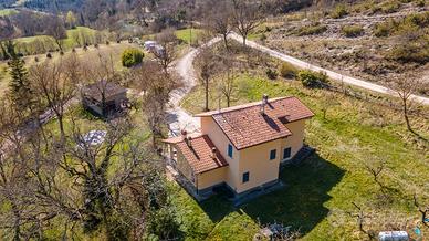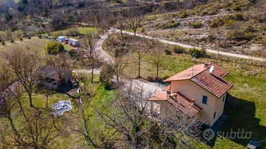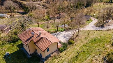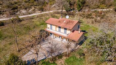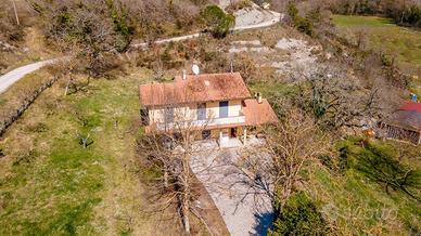 In posizione tranquilla e riservata, immersa nel verde, proponiamo casa singola di circa 140 mq disposta su due livelli. Al piano terra troviamo un ampio soggiorno con camino, una cucina abitabile con camino, ripostiglio e spazioso portico, ideale per vivere l'esterno in totale relax. La zona notte, al piano superiore, è composta da tre camere da letto e due bagni (di cui uno in camera); tutte le stanze hanno accesso diretto a un ampio terrazzo con vista aperta sulla campagna. Completano la proprietà garage e terreno privato di circa 2.500 mq.