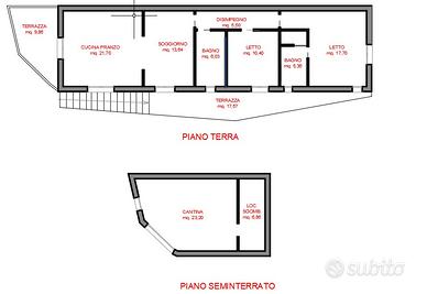 Al piano seminterrato è presente una cantina di circa 23 mq, utilizzabile anche come garage o locale accessorio.