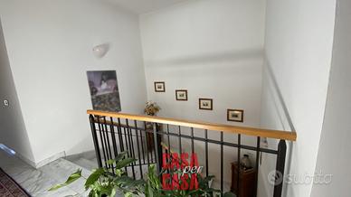 Al primo piano, troviamo due camere da letto matrimoniali dall'atmosfera accogliente, una camera singola con bagno privato, un'altra cucina con balcone, un generoso salone supplementare ed un ulteriore bagno finestrato. L'intera abitazione è caratterizzata da pavimenti in marmo, che conferiscono un tocco di eleganza a tutti gli spazi.
