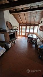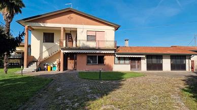 In centro paese proponiamo una casa singola divisa in due unità abitative di cui una abitabile da subito (porzione al piano terra), l porzione al piano primo è da rivedere gli impianti, tetto rifatto, entrambi le porzione con serramenti con vetro camera doppio, entrambi le porzioni sono composte da soggiorno, cucina separata, bagno tre ampie camere da letto, sopra c'è un terrazzo abitabile, al piano terra abbiamo in più il bagno lavanderia, una sala da pranzo travata a vista con caminetto a legna, garage doppio di circa 42 mq, giardino di circa 800 mq, libera subito!