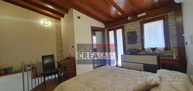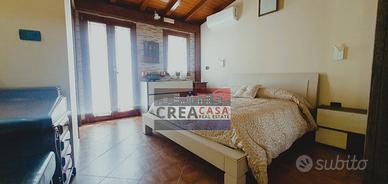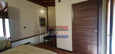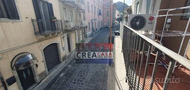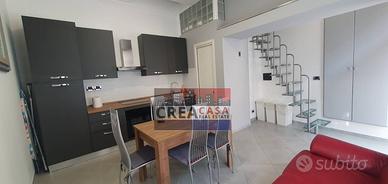 ingresso su zona giorno con cucina abitabile e bagno;piano superiore con camera da letto matrimoniale e bagno padronale, con balcone che da su via Ruffo.