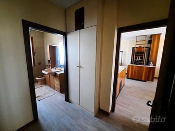 L'abitazione si compone al piano primo da: zona soggiorno/pranzo, cucinino, 2 camere matrimoniali da quasi 30 mq ciascuna, affacciate in un lungo poggiolo, disimpegno, bagno e ripostiglio; inoltre, comunicante con il primo piano dell'immobile, si ha un laboratorio, anti e bagno, lavanderia e disimpegno.