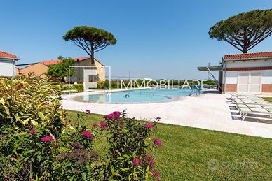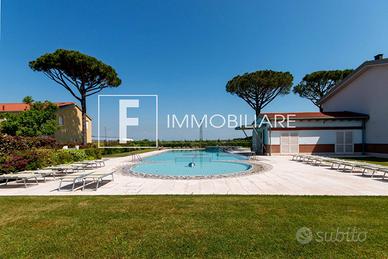 Rif: L255-B Classe energetica: C - EPglnr: 69.78 kWh/m² VILLETTA INDIPENDENTE IN RESIDENCE CON PISCINA A JESOLO. INFO E VISITE sig. FRANCESCO, tel. 328.45.82.614 - Riferimento annuncio L255. Tra il centro di Cortellazzo e Jesolo Paese, in posizione tranquilla immersa nella natura ed a solo 1 km dalle spiagge, proponiamo VILLETTA INDIPENDENTE con 200 mq di giardino privato e doppio posto auto. L'abitazione è parte di un grazioso residence dotato di ascensore, ampi spazi verdi, parcheggio e PISCINA condominiale, adatto ad un utilizzo residenziale o come investimento a reddito vista l'elevata richiesta di locazioni in zona. Il reparto abitabile al pian terreno è suddiviso in zona giorno con salotto e cucina a vista con porte finestre ben esposte a sud e collegate al giardino piacevolmente ombreggiato dai pini marittimi. Sempre al piano terra troviamo due camere con porta finestra ed un bagno finestrato con doccia. Il tutto è mente rifinito con travature in legno che richiamano il contesto della campagna limitrofa. Il piano primo mansardato, accessibile dalla comoda scala interna e ben illuminato grazie ai velux dedicati, aumenta di molto la fruibilità dell'abitazione grazie agli spazi utilizzabili come ripostigli, studio o camere da letto aggiuntive ed un bagno con vasca da bagno. Il giardino in proprietà permette di creare ulteriori spazi da condividere per cene e pranzi all'aperto, oltre al posizionamento di un ricovero attezzi o una piccola piscina idromassaggio per rilassarsi nel tempo libero. L'uso della piscina condominiale è un ulteriore plus di questa abitazione a soli 5 minuti dal mare. Compreso nel prezzo parte dell'arredo presente, l'impianto autonomo di riscaldamento con caldaia a gas, l'impianto di aria condizionata con doppio split ed i due posti auto scoperti in proprietà. L'acquisto di questo immobile è particolarmente vantaggioso in quanto la compravendita è soggetta ad imposta di registro - NO IVA. Per maggiori informazioni...