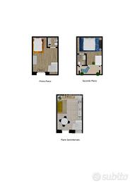 Dall'ingresso si nota subito la prima camera al piano terra (seminterrato), in cui sarà possibile realizzare un'accogliente area comune con una piccola cucina in modo da poter permettere agli ospiti di preparare la colazione o magari degli spuntini veloci.