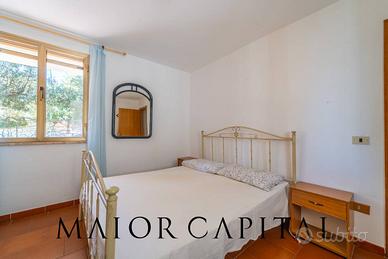 Lampia proprietà è circondata da un giardino che la abbraccia su quattro lati, qui è possibile trovare diverse tipologie di piante della macchia mediterranea e una vite rampicante che si intreccia su un supporto metallico e conferisce alla casa un fascino rustico. Al piano terra troviamo un ampio living con camino e un cucinotto separato. La zona notte include tre ampie camere da letto, due delle quali attualmente adibite a camere matrimoniali, ma facilmente convertibili in doppie a seconda delle esigenze. A completare questo livello, un bagno con doccia.