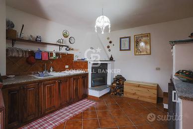 - Il piano terra è diviso ,tramite graziosa arcata,in un comodo soggiorno ed una cucina in muratura con camino e ben vivibile con camino, completa il livello un bagno di servizio.