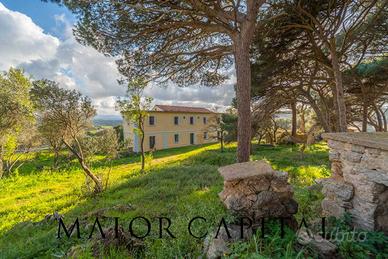 Attorno alla dimora si estendono quattro ettari di terreno ricchi di uliveti e un fitto bosco di sugherete, che avvolgono la proprietà in unatmosfera di quiete e riservatezza. Allinterno della proprietà si trovano anche antichi stazzi e magazzini in pietra, testimonianze della tradizione gallurese, che possono essere recuperati e trasformati in spazi abitativi, ambienti ricettivi o luoghi dedicati ad esperienze enogastronomiche e culturali.